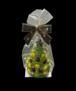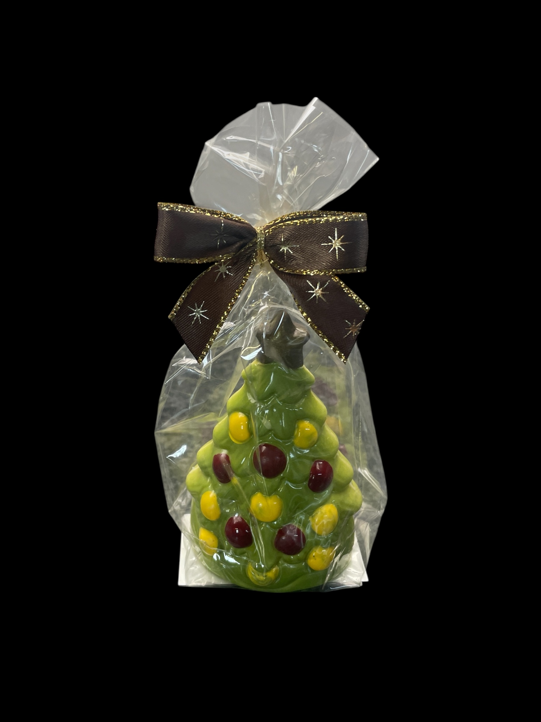 Handgefertigter Weihnachtsbaum, mit Lebensmittelfarbe dekoriert und gegossen aus feinster Edelweiß-Schokolade (36% Kakaoanteil).