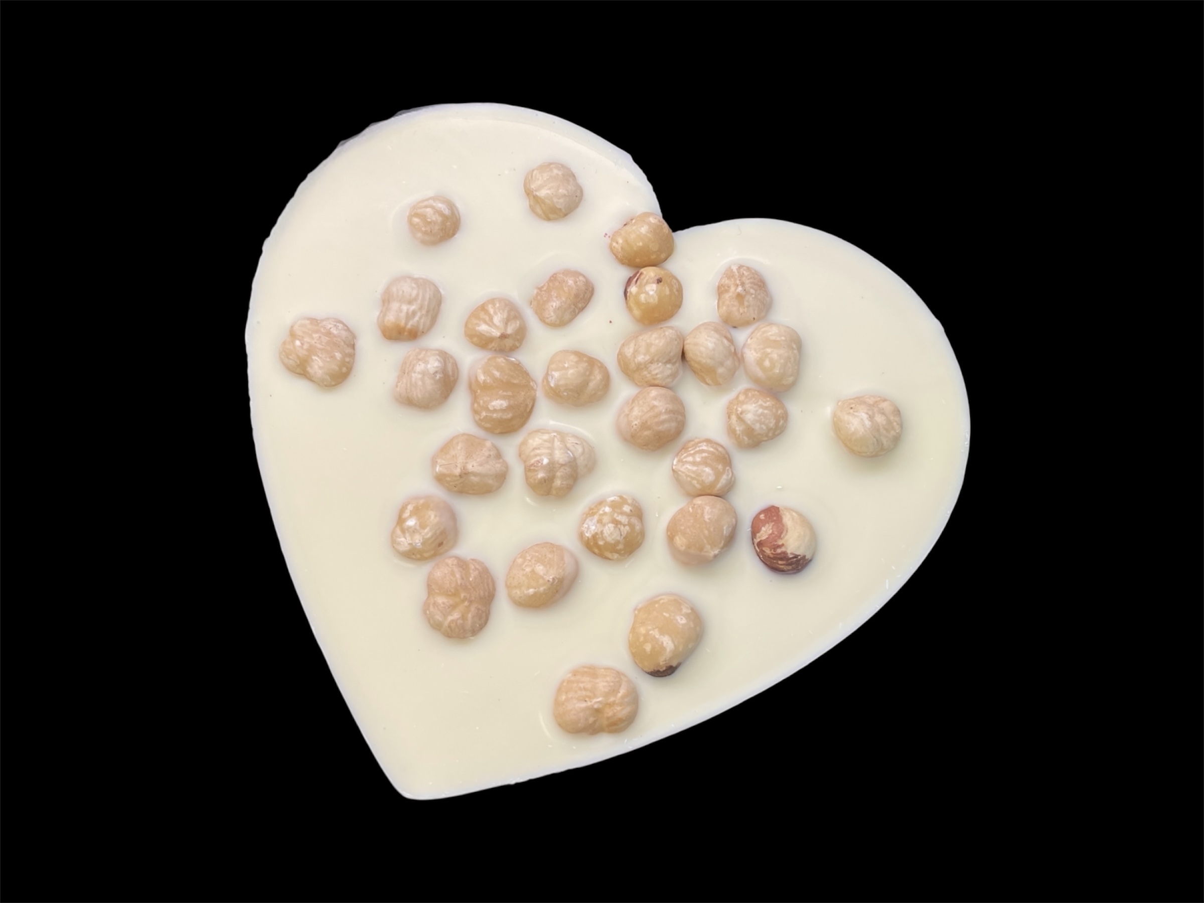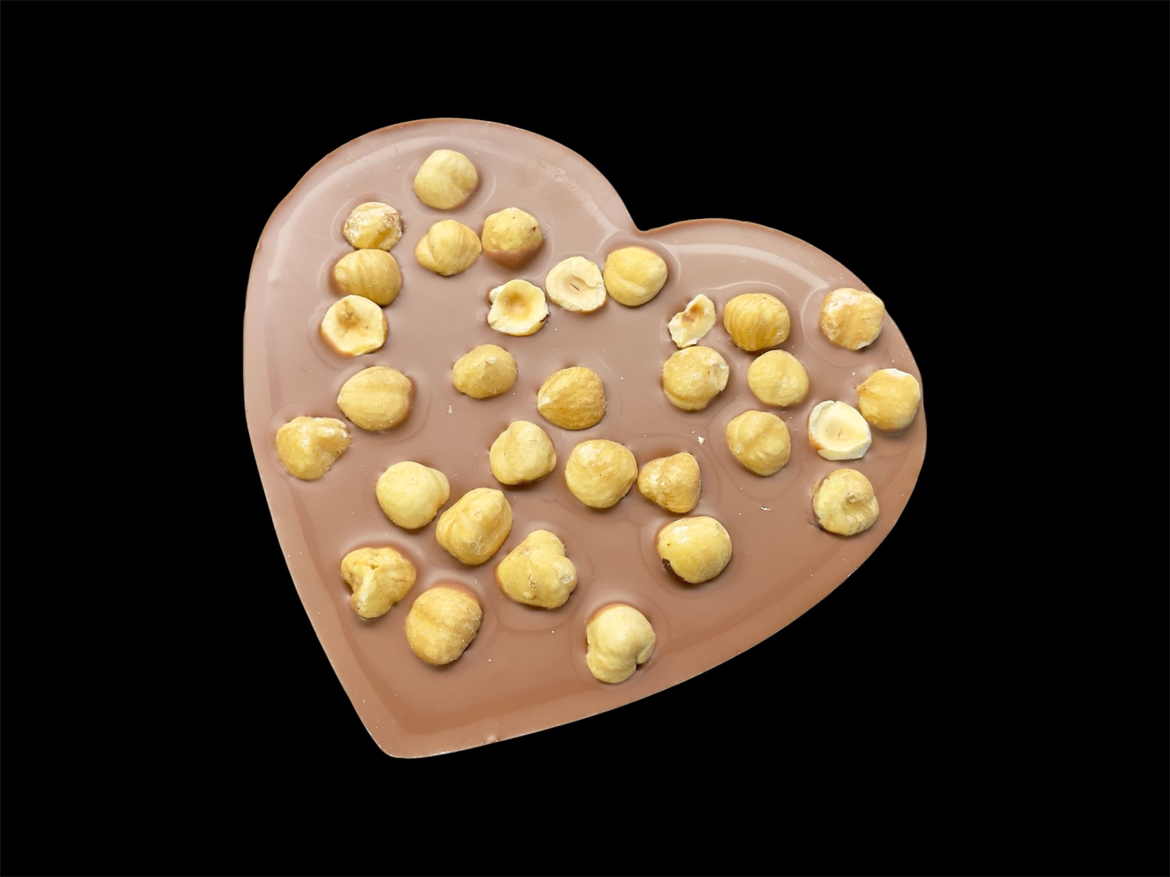 Herz aus edler Schokolade. In Kombination mit Piemonteser Haselnüssen wird sie zu einem besonders nussigen Geschmackserlebnis.