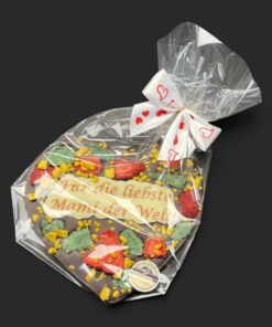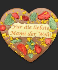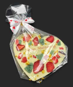 Gleichzeitig setzen wir auf hochwertige Zutaten: feinste Vollmilchschokolade, fruchtige Erdbeere, exotische Passionsfrucht und frische Minze. So wird aus einem einfachen flachen Schokoladenherz mit Muttertagsgruß ein kleines Geschmackserlebnis aus unserer Schokoladenmanufaktur in Frankfurt am Main – mit viel Liebe zum Detail.