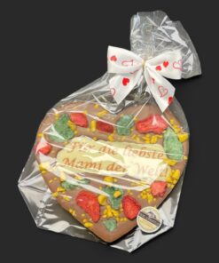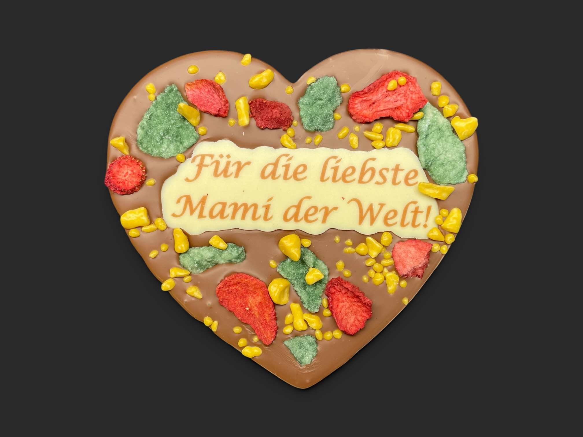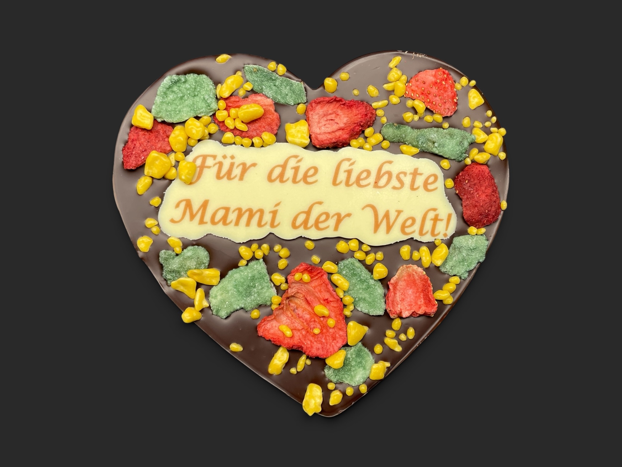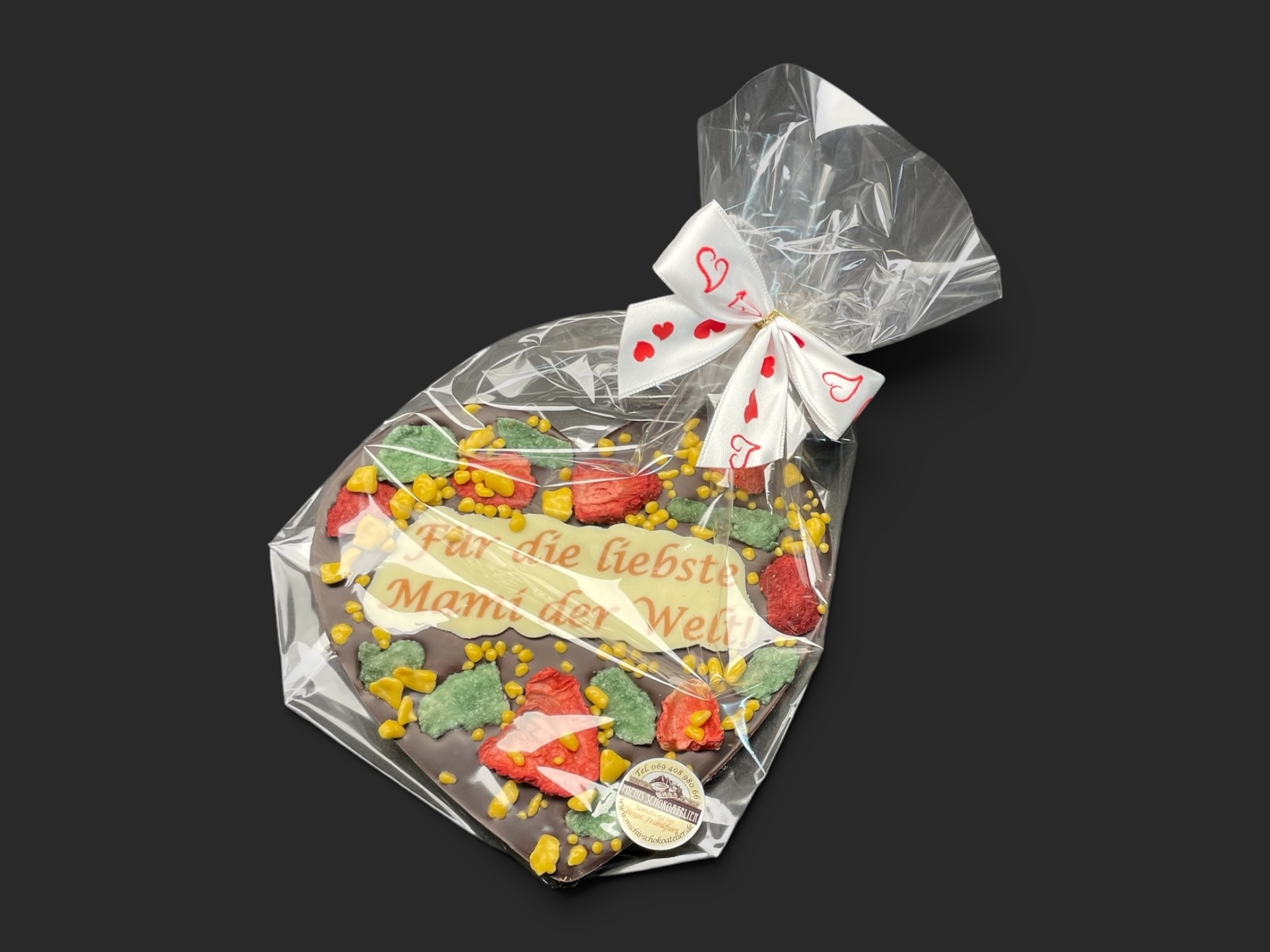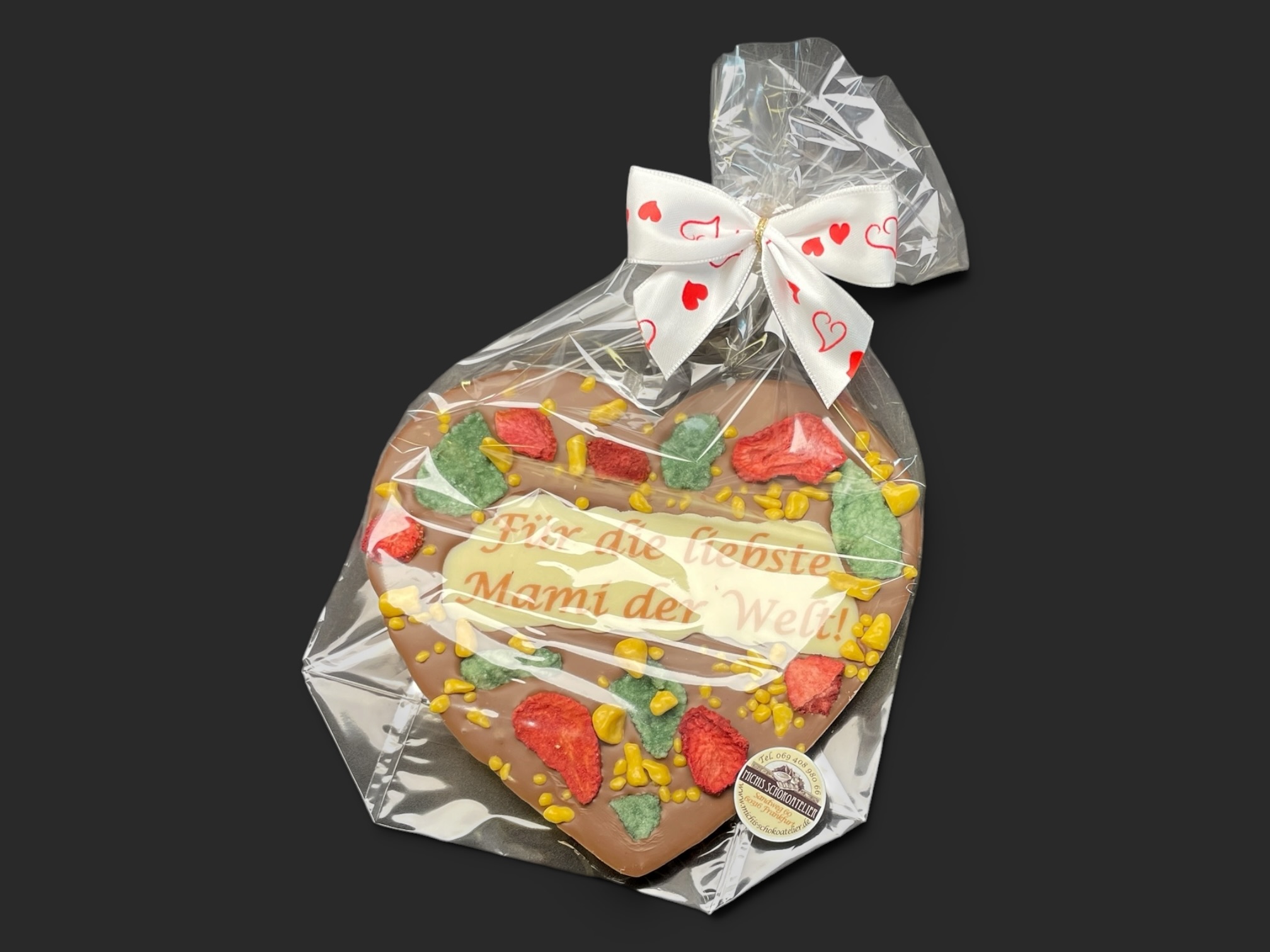 Ein Muttertagsherz aus Schokolade mit persönlichem Schriftzug