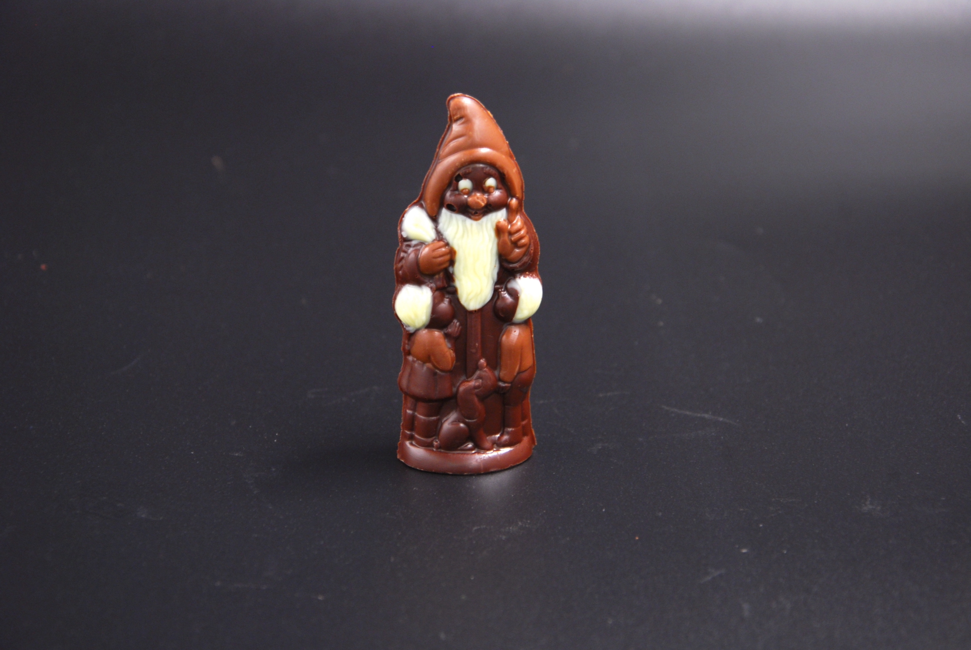 Handgefertigter Schoko-Nikolaus, mit viel Liebe ausdekoriert und gegossen aus feinster Schokolade (zur Auswahl stehen weiße Edelweiß-Kuvertüre, costa ricanische Vollmilch-Kuvertüre oder zartbittere Maracaibo-Kuvertüre).
