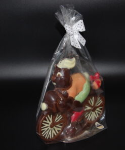 Niedliches handgefertigtes Küken im Ei, gegossen aus feinster zartbitterer Schokolade (Maracaibo – Venezuela, 65% Kakaoanteil mindestens), ausdekoriert mit unterschiedlichen Schokoladen und viel Liebe.