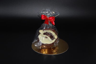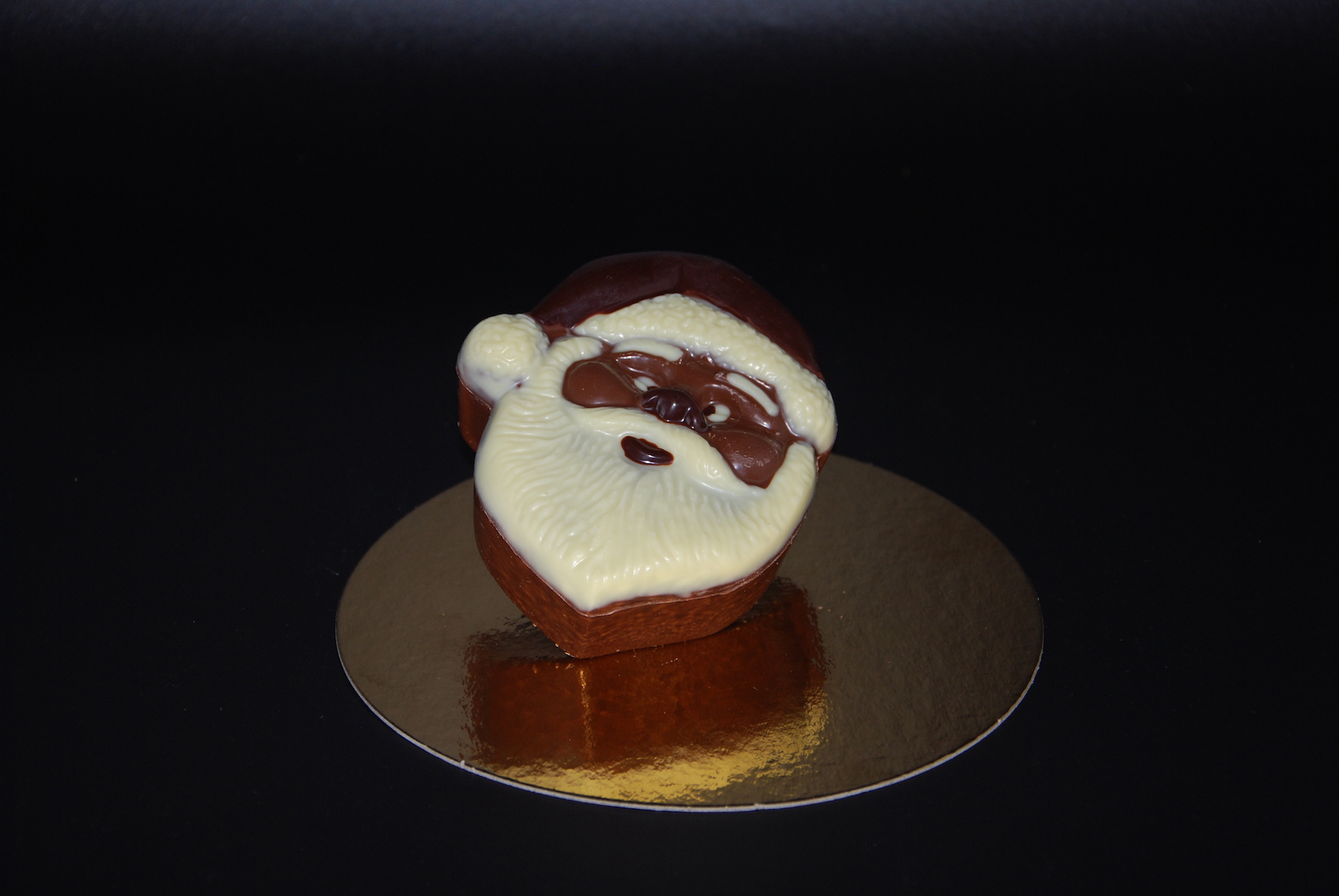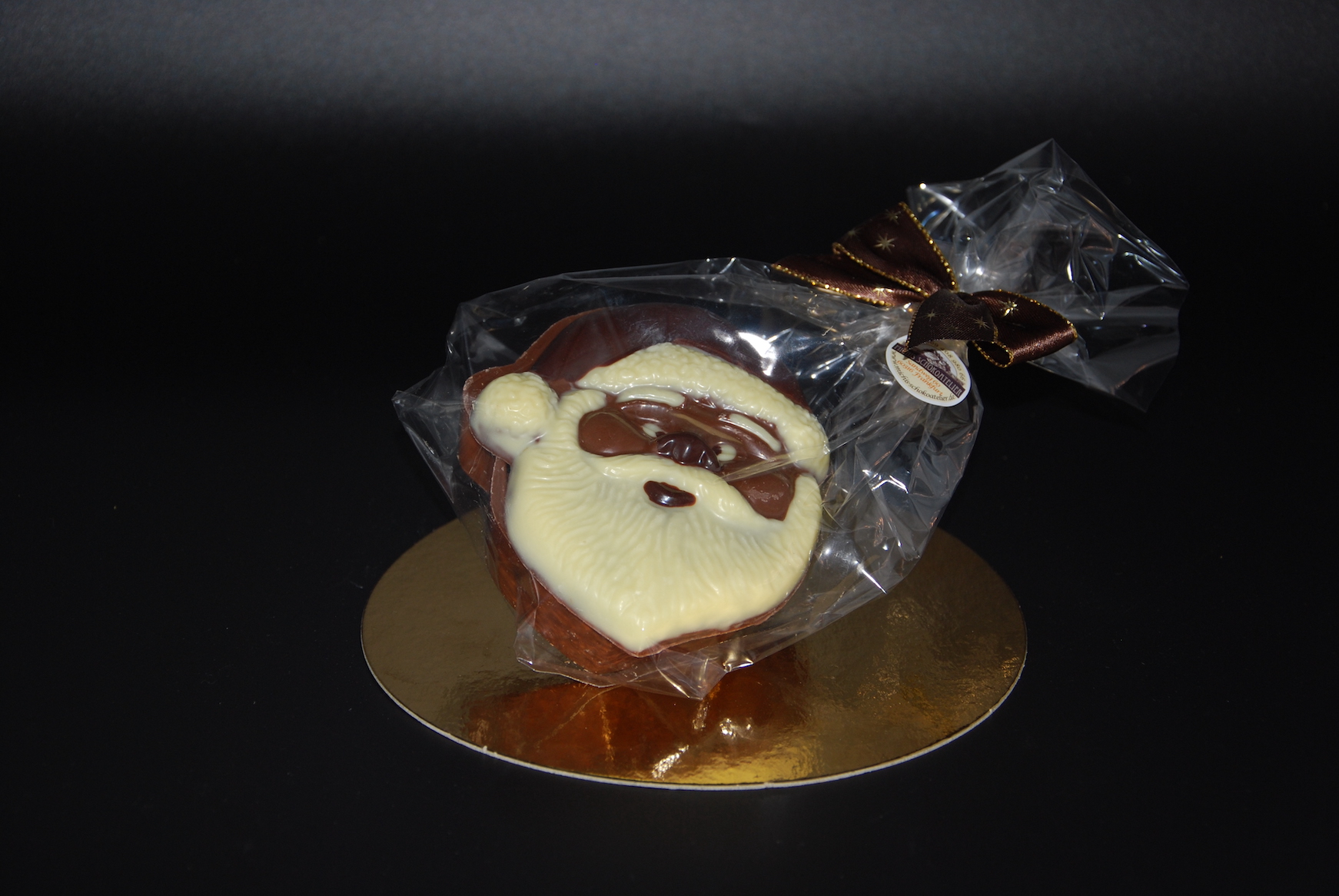Handgefertigte Bonbonière mit Nikolaus-Kopf, mit viel Liebe ausdekoriert und gegossen aus feinster Schokolade (zur Auswahl stehen costa-ricanische Vollmilch-Kuvertüre oder zartbittere Maracaibo-Kuvertüre).