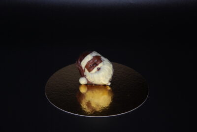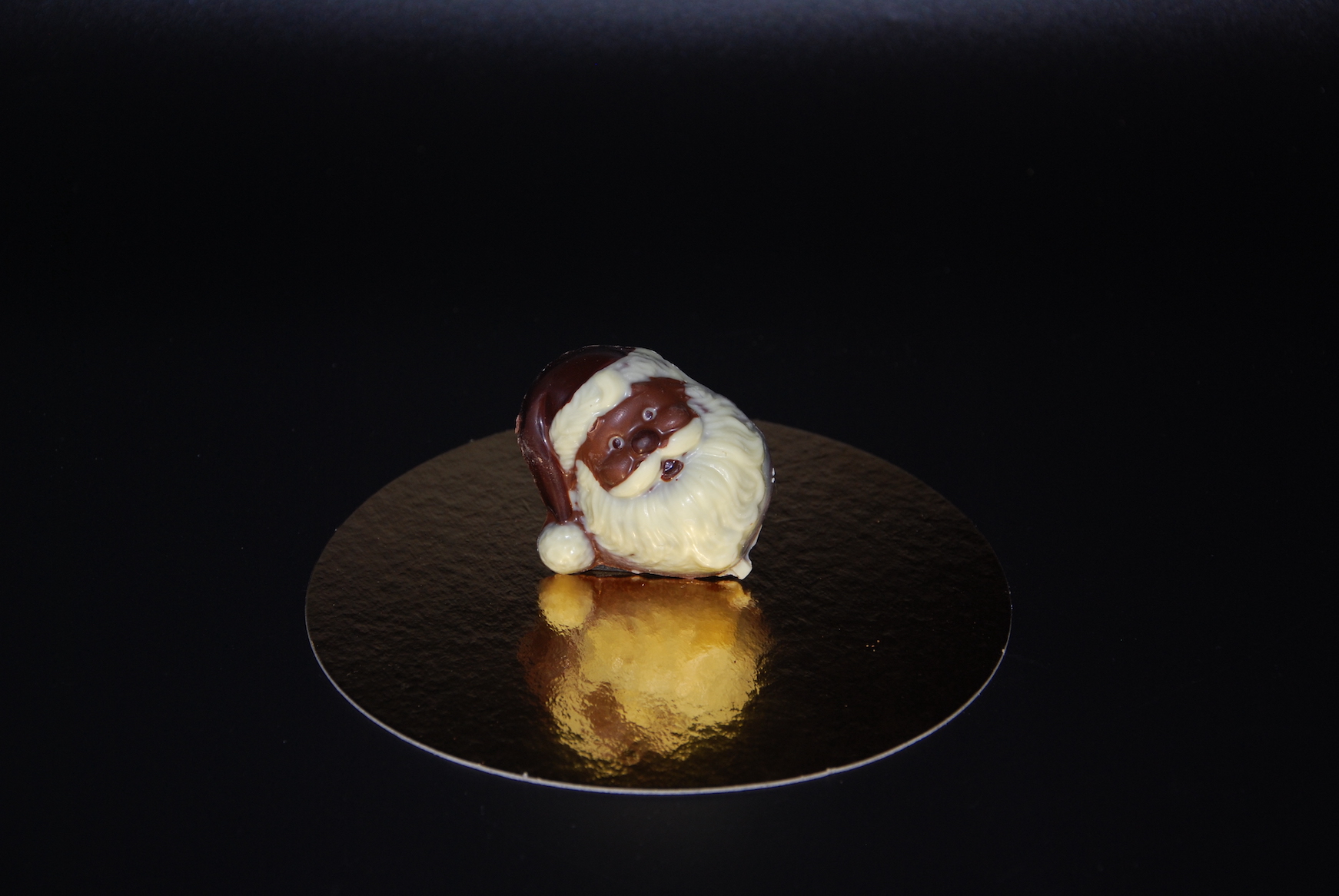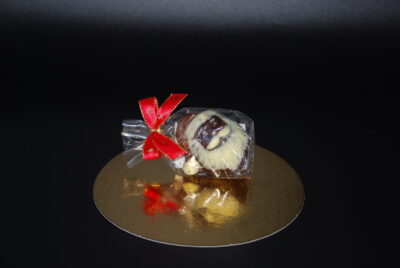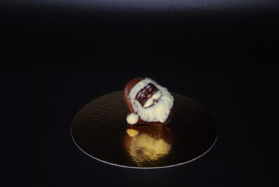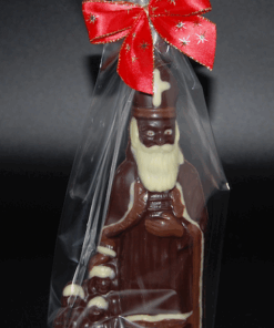 Handgefertigter Nikolaus-Kopf, mit viel Liebe ausdekoriert und massiv gegossen aus feinster Schokolade (zur Auswahl stehen costa ricanische Vollmilch-Schokolade oder zartbittere Maracaibo-Schokolade).