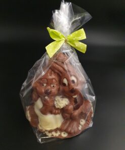 Handgefertigte Schokoladentafel mit Oster-Gruß und -Dekor, liebevoll verziert und gegossen aus feinster costa-ricanischer Vollmilch-Schokolade (40% Kakaoanteil mindestens).