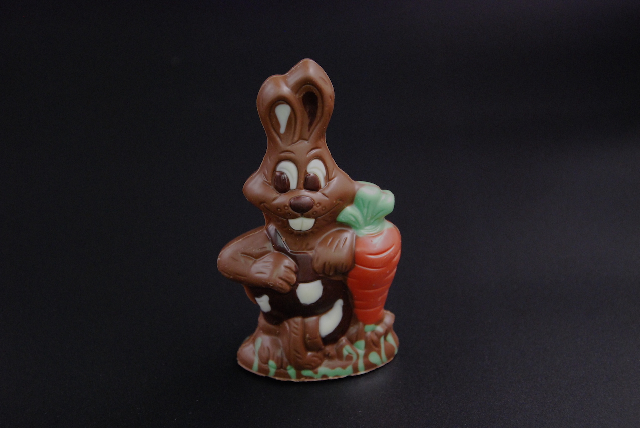 Osterhase mit Karotte aus Vollmilch-Schokolade (40% Kakaoanteil)
