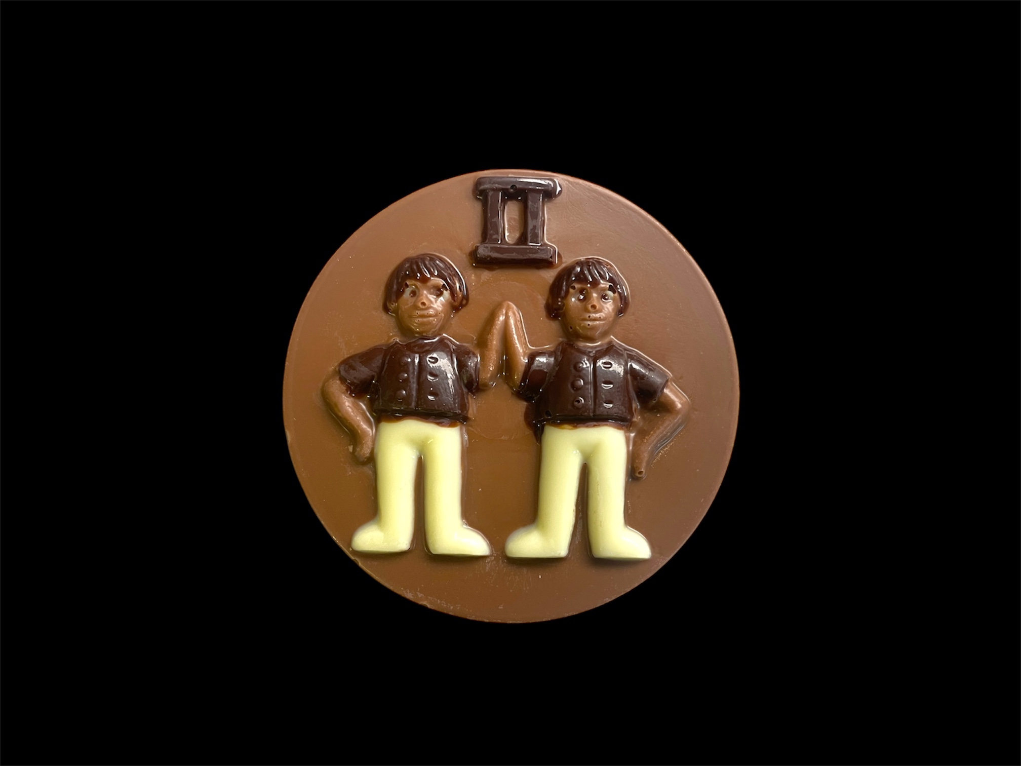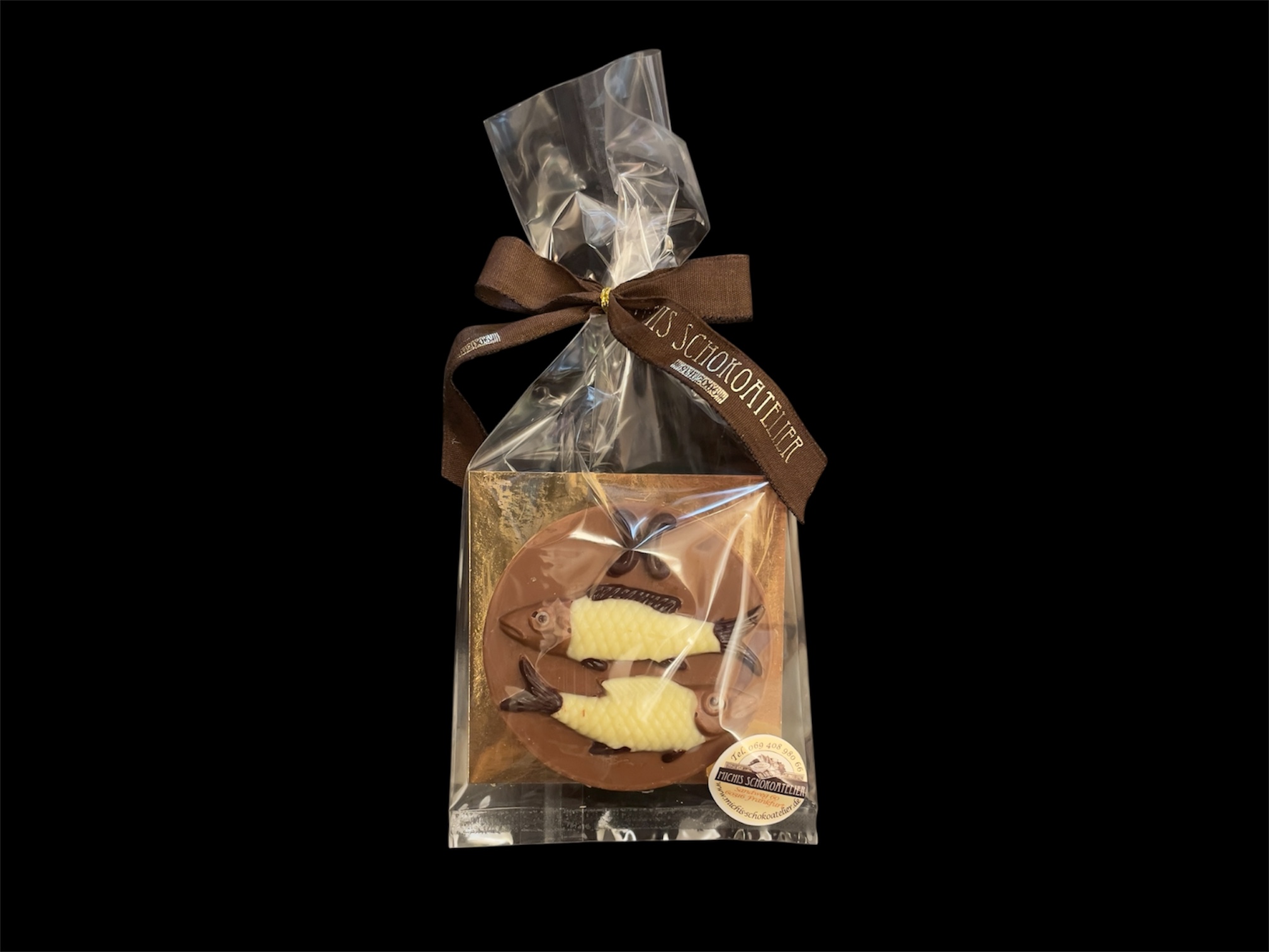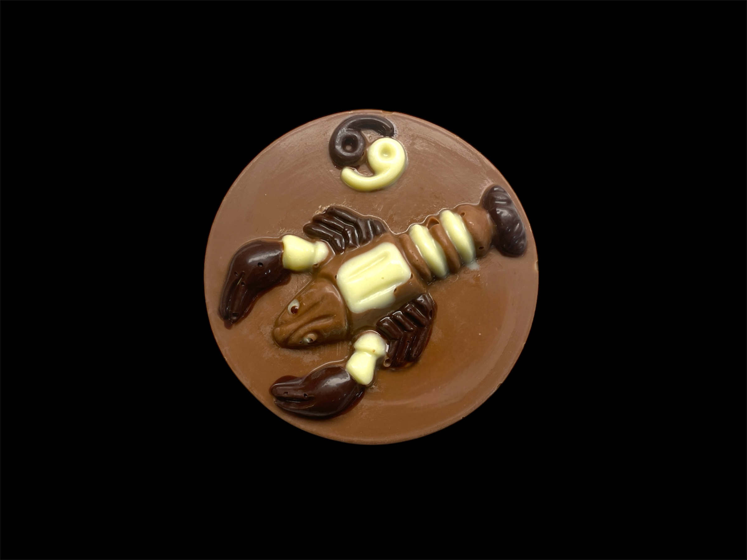 Handgefertigte Schokoladen-Sternzeichen, mit viel Liebe ausdekoriert und gegossen aus feinster costa-ricanischer Vollmilch-Schokolade (40% Kakaoanteil mindestens).